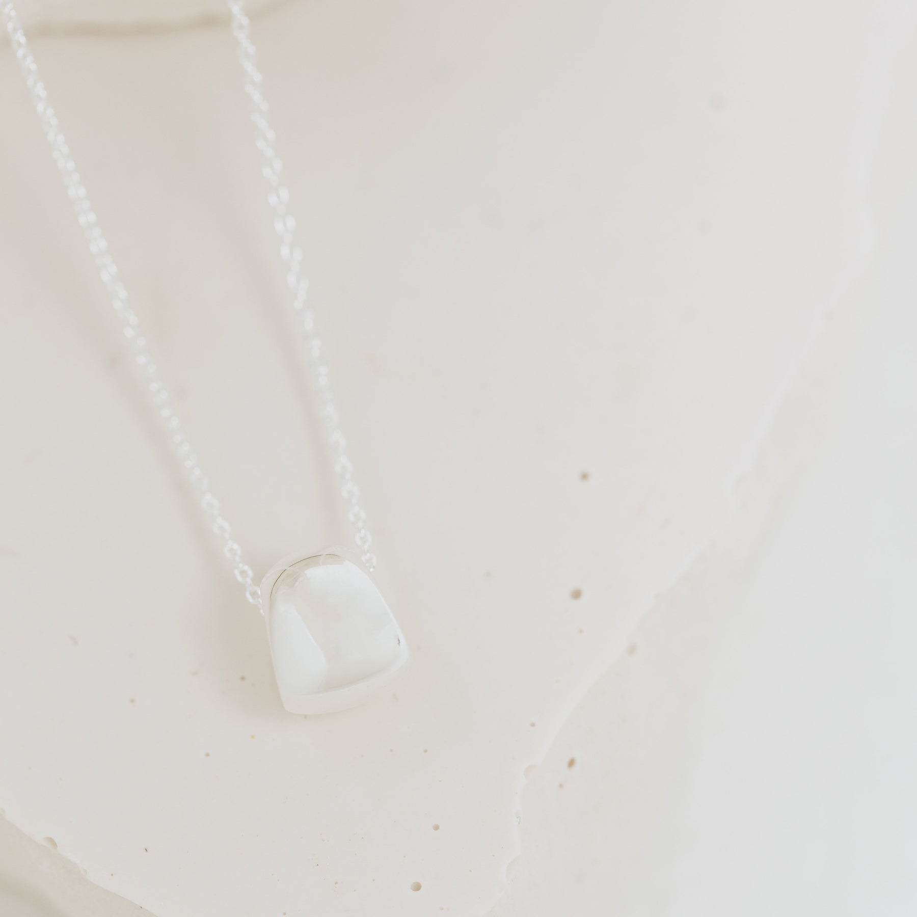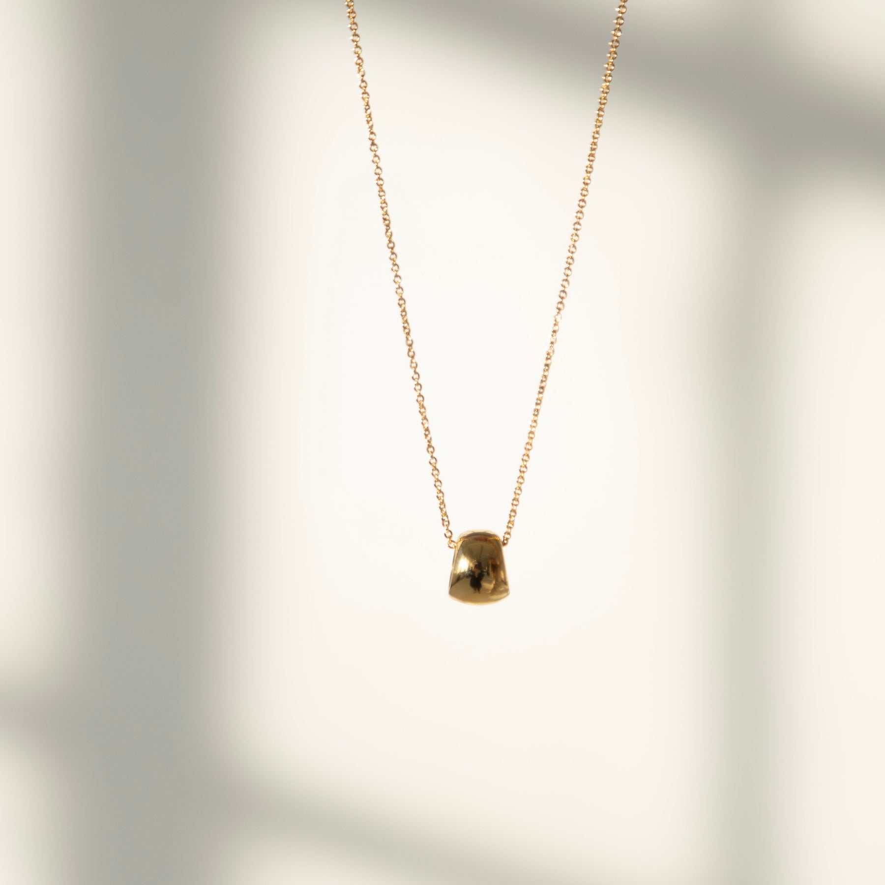 The necklace features a solid round pendant ring that forms a simple classic design.